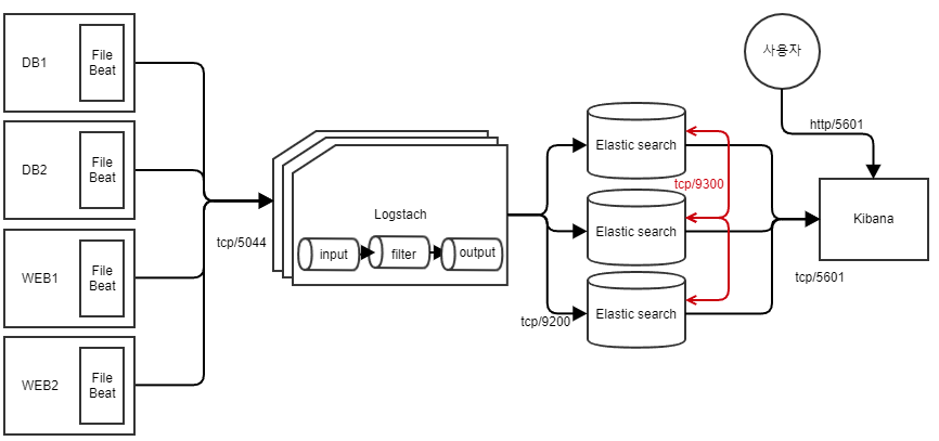 - Elasticsearch노드간의 통신을 위한 포트 : tcp/9300