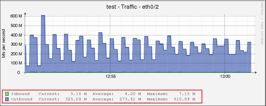 - Traffic Shaping 적용전 (최대 610Mbps까지 트래픽 발생)