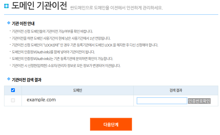 도메인 정보 이전하기 | igoni.kr