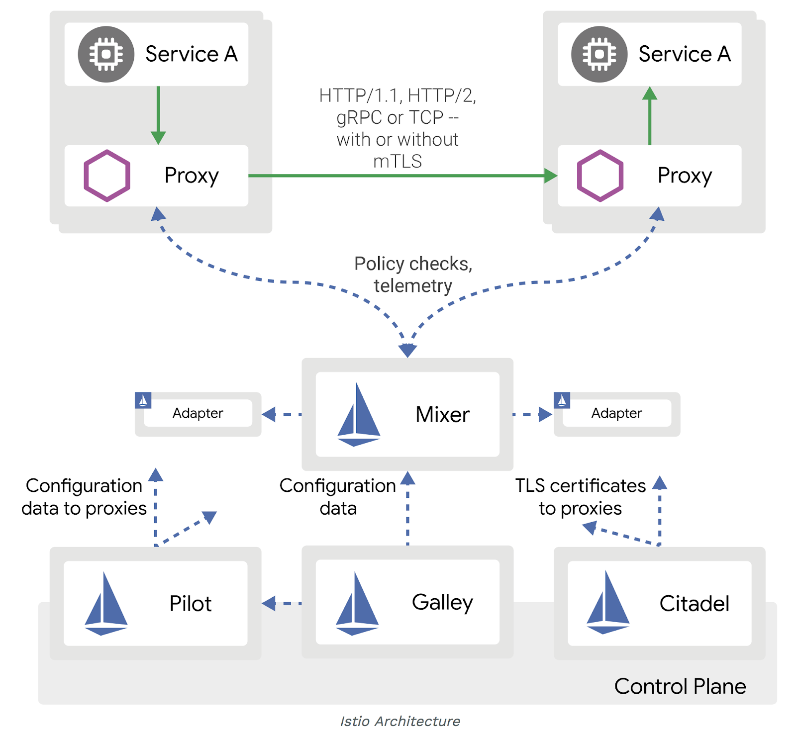 - Citadel : 데이터 전송시 암호화 전송(TLS) 역활, 현재 내부 통신에는 암호화과정이 없어서 사용하지 않음